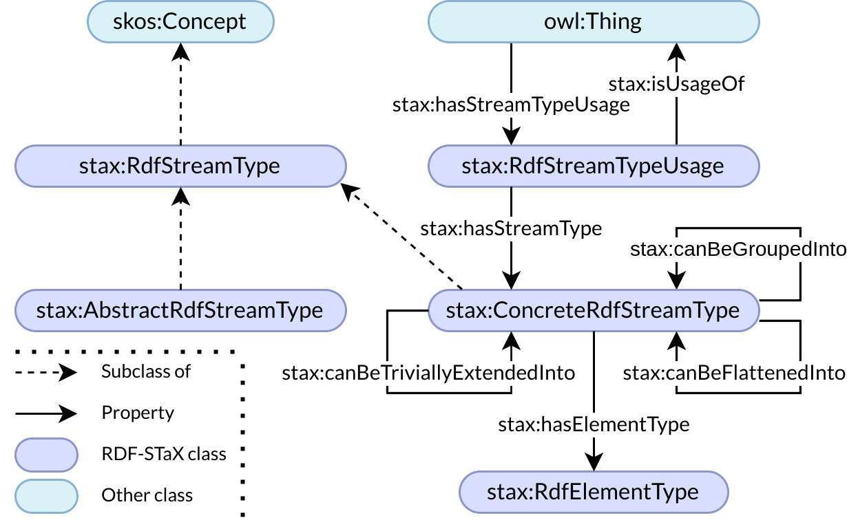 RDF-STaX is an OWL 2 DL ontology that enables describing the types of RDF streams and defines relations between them.